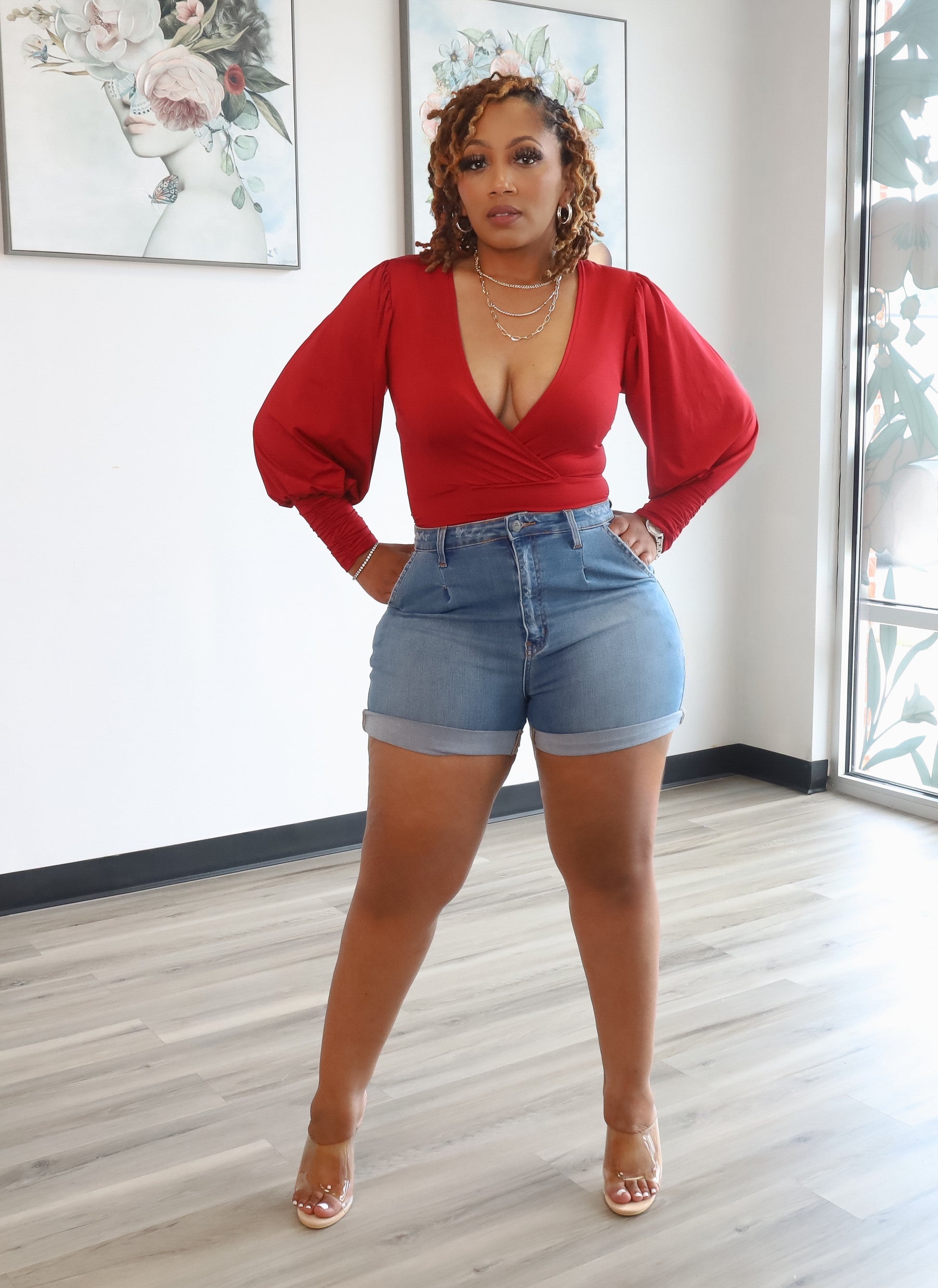 Stretchy Denim Cuffed Shorts